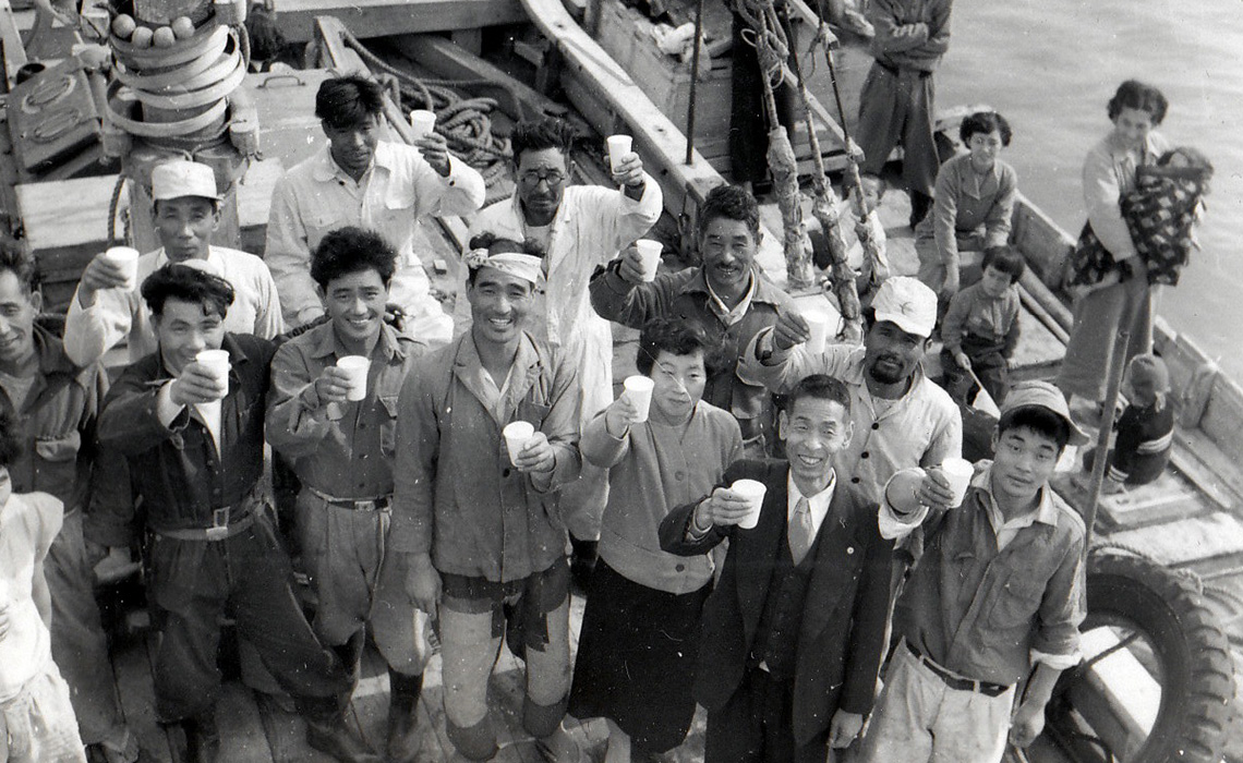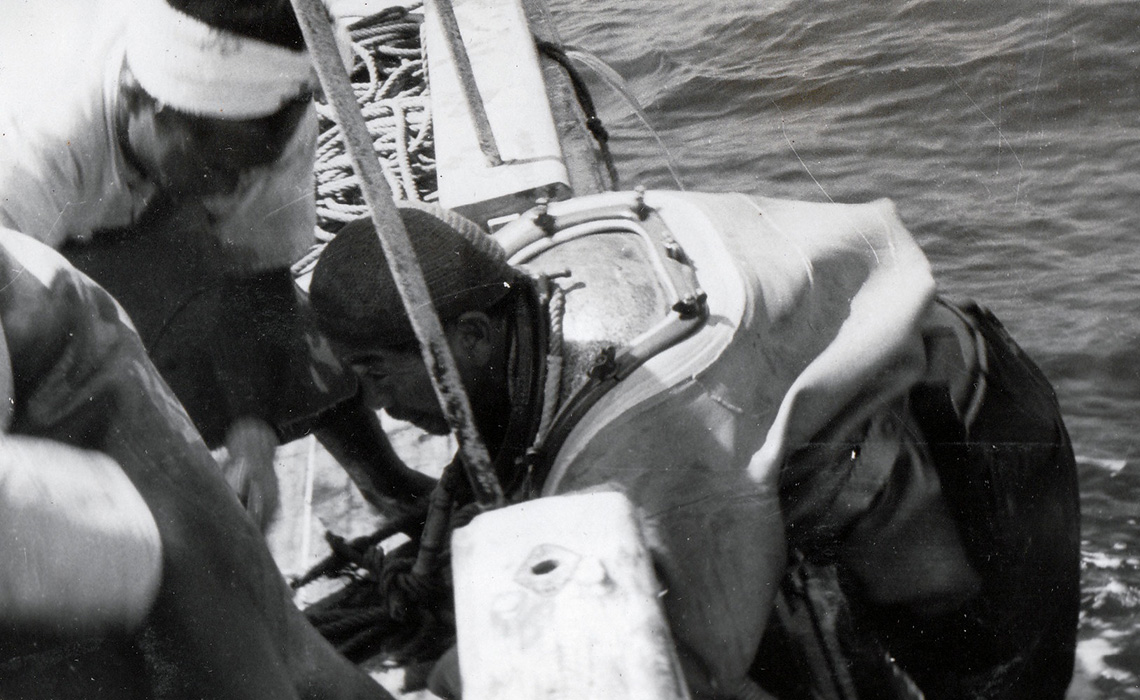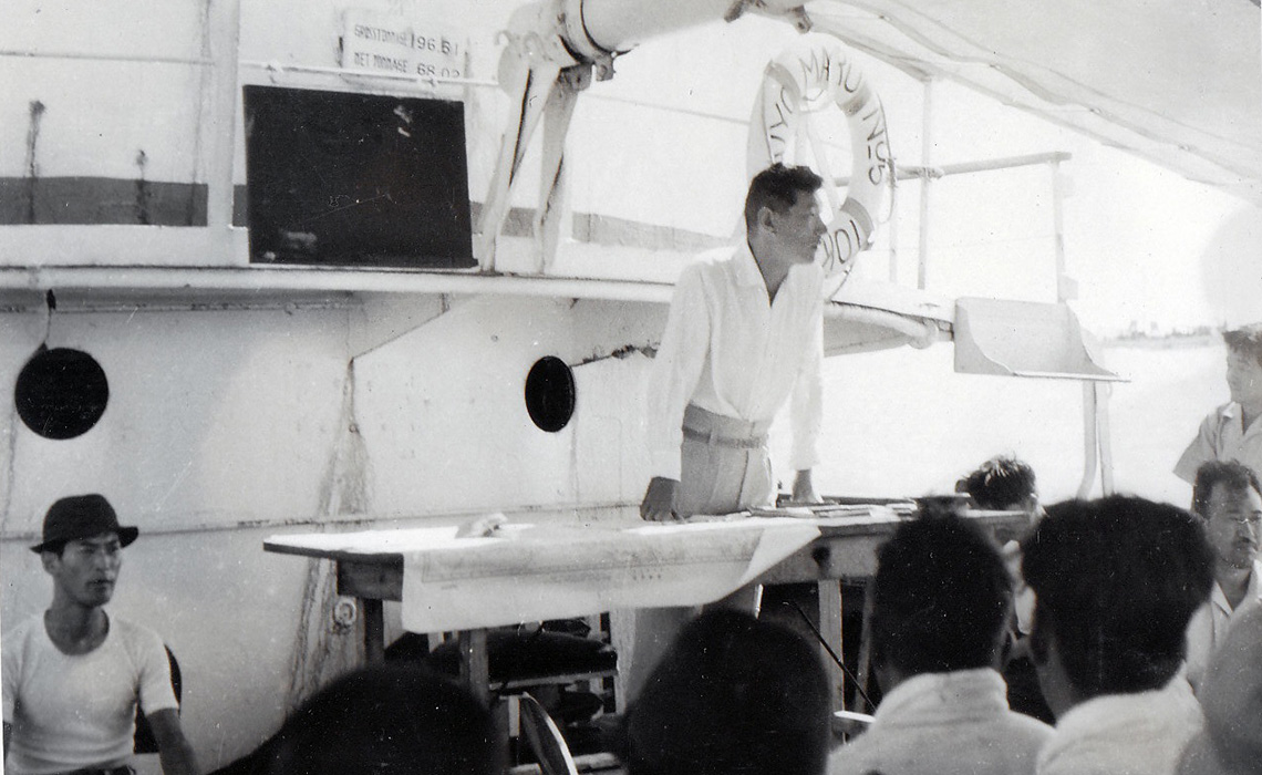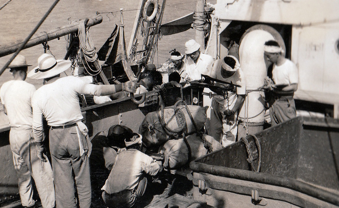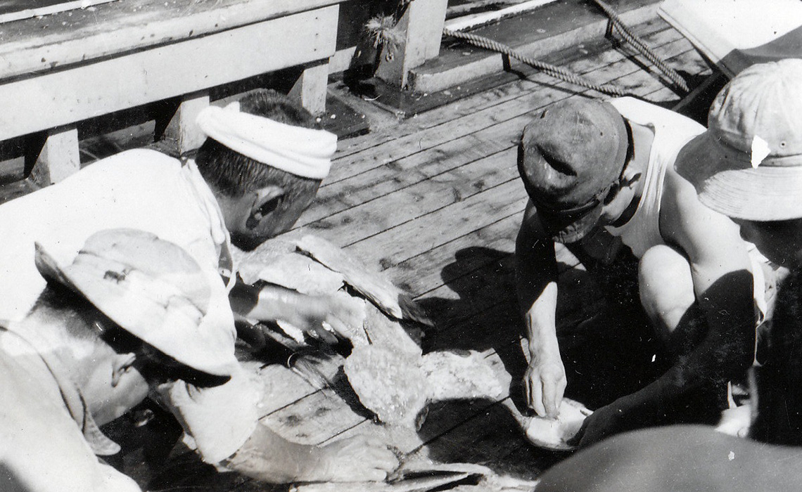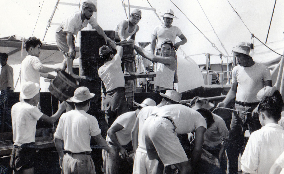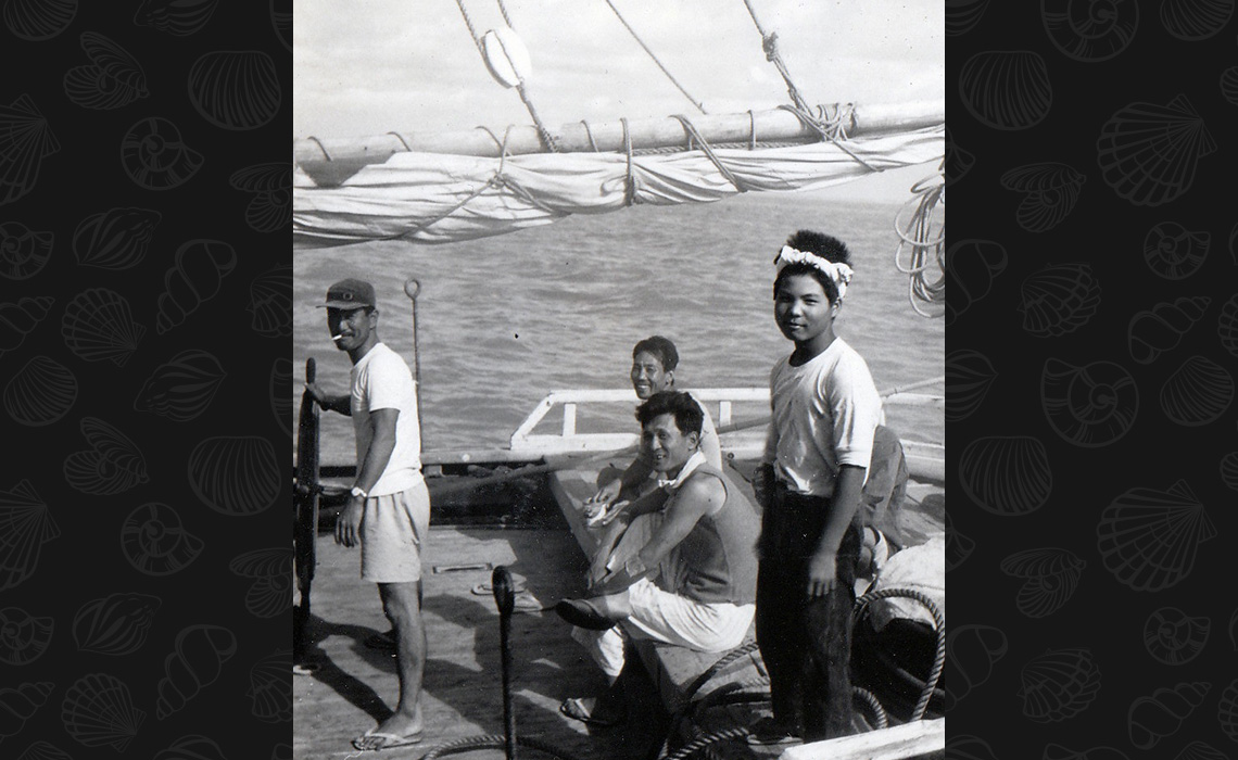 当店の創業者・中村藤四郎もその一人。昭和7年に「あらふら丸」という名の船で、兄弟や有志とともにアラフラ海へ出航しました。しかし、第二次世界大戦とともに真珠貝採取漁は休止。開戦前に日本に帰国していた藤四郎が、大王町名田で貝ボタン製造工場を開きました。